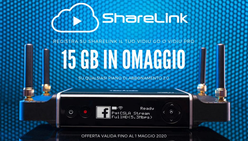 Fino al 1 maggio 2020 per ogni registrazione di VidiU Go o VidiU Pro su Sharelink ottieni 15 GB di credito dati gratuito, l’equivalente di oltre 8 ore di streaming Full HD a 4 mbps!