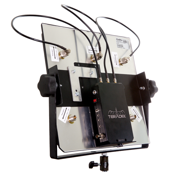 The Teradek Array is a 5GHz MIMO panel antenna designed for use with Beam, Bolt 600 and Bolt 2000 receivers. The Array offers a more resilient wireless transmission, especially in challenging RF conditions, but it will not increase range.