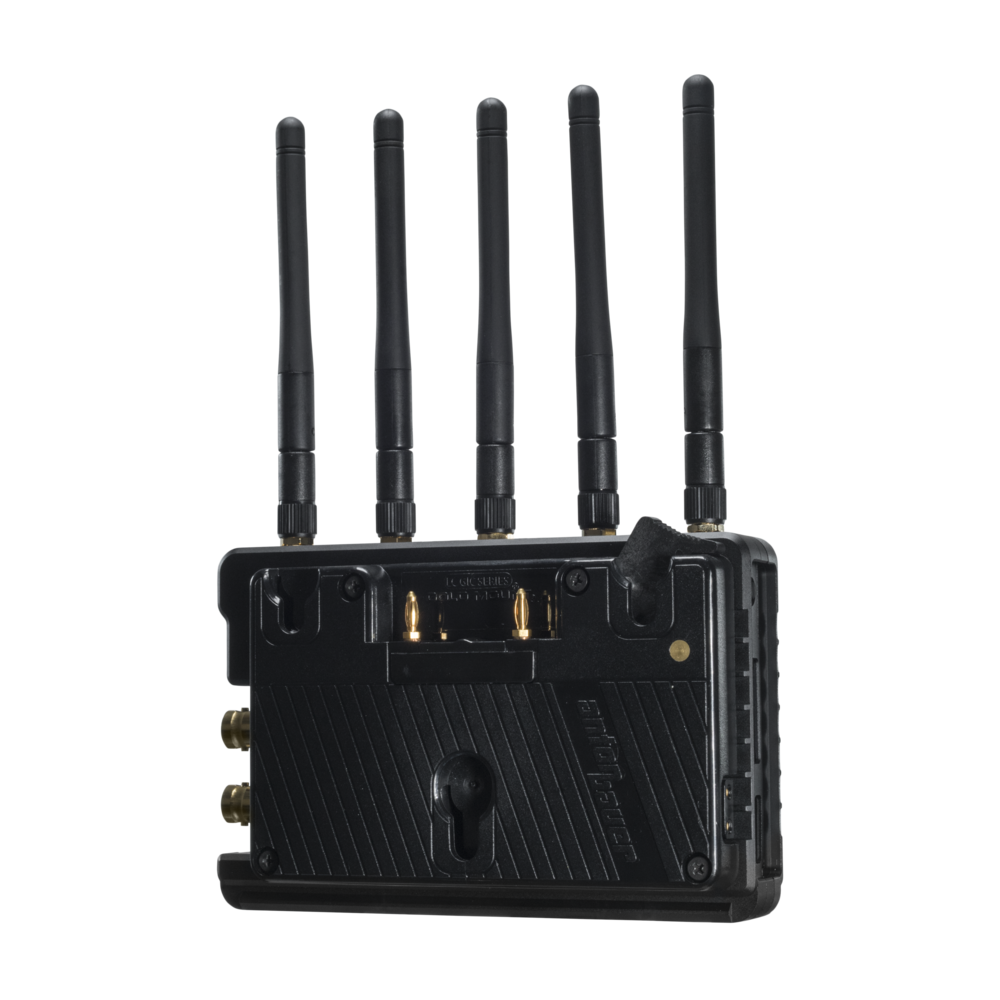 The Dual (Male & Female) Battery Plate Set offers pass-through power, making it the ideal solution for mounting and powering a Bolt 1000/3000 XT receiver on monitors and with the Teradek Antenna Array.