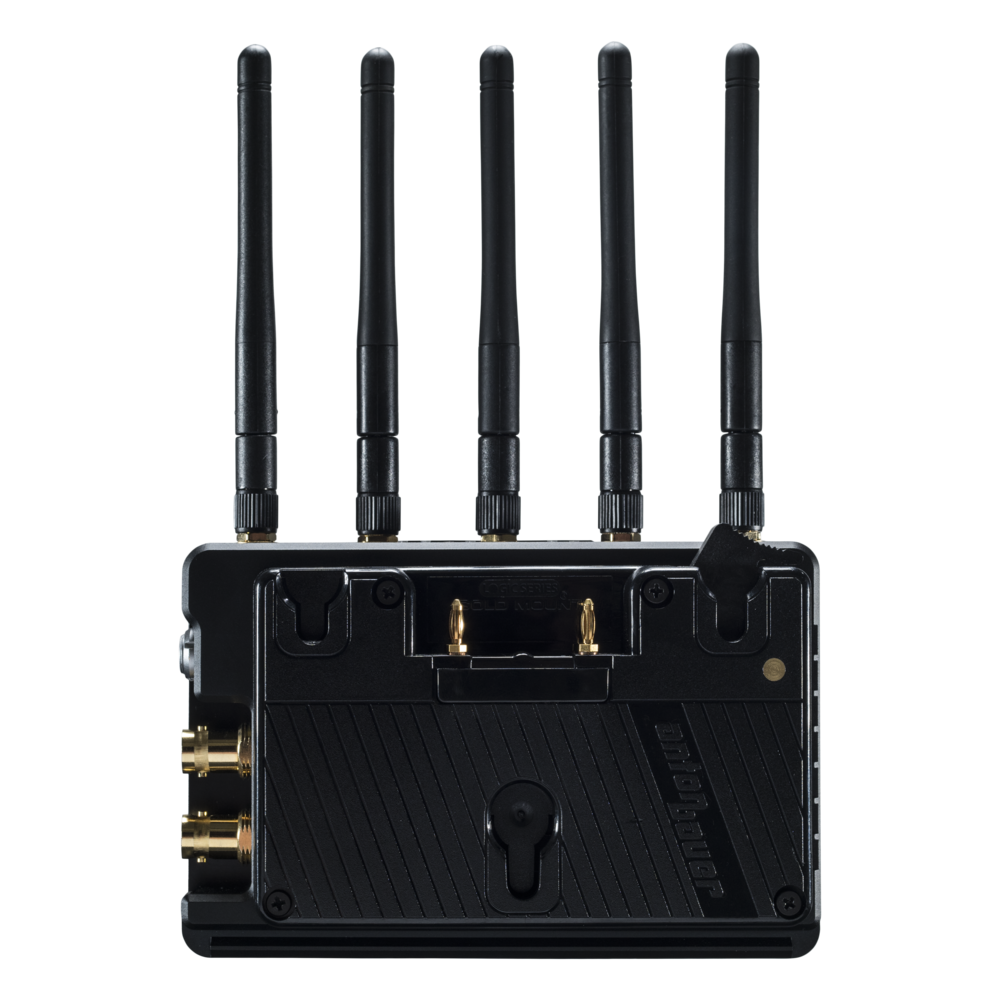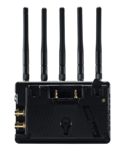 An all-new aluminum chassis further reduces the size and weight of the Bolt line, with receivers also allowing for integrated pass-through power. Available battery plate accessories include V- or Gold-mount, in addition to bi-directional Sony L-series or Canon LP-E6 plates on the Bolt 500 XT. Teradek has also replaced the internal antennas on the Bolt 500 XT transmitter with an external set to enhance wireless performance when operating in environments with large obstacles or heavy interference.