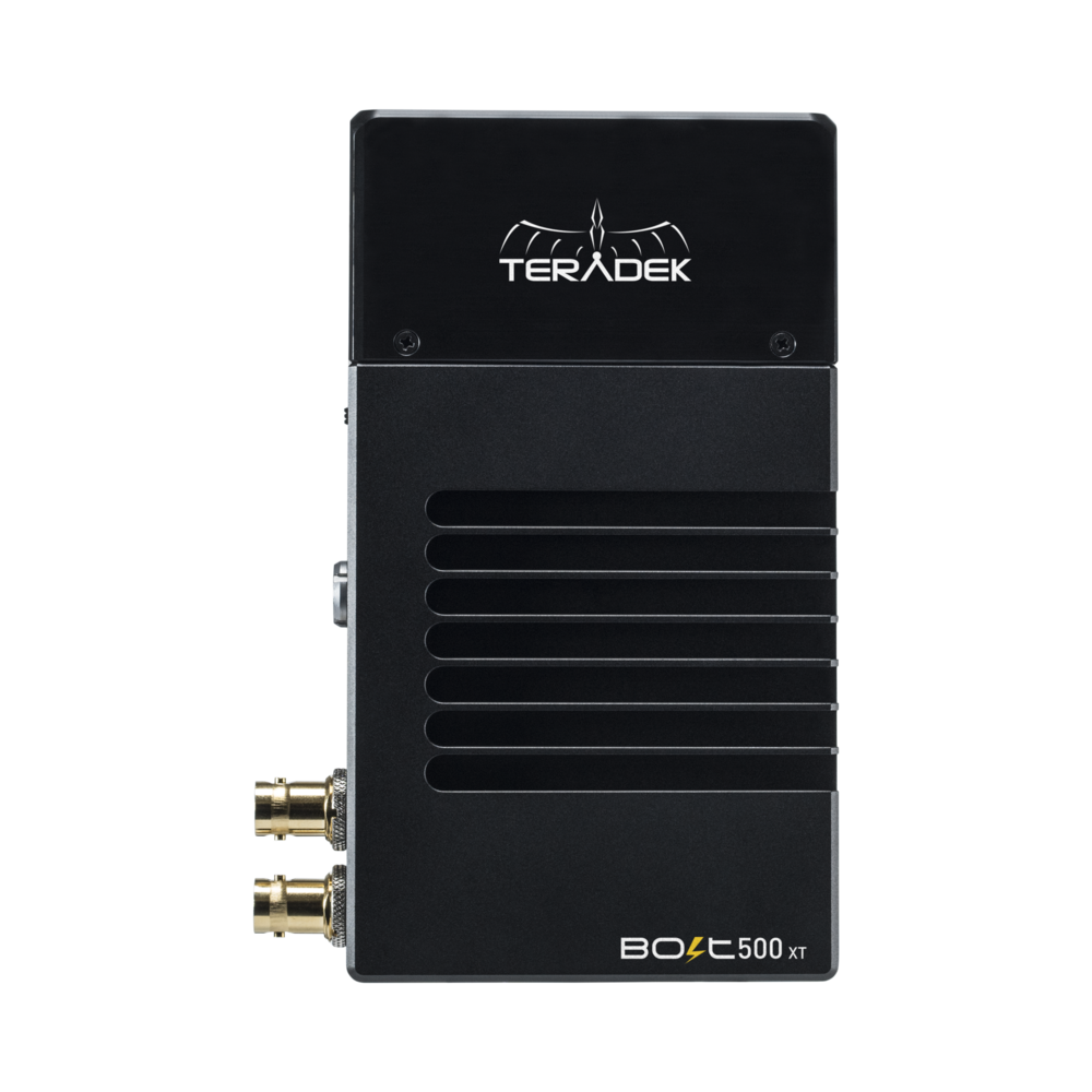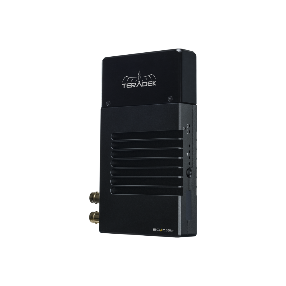 An all-new aluminum chassis further reduces the size and weight of the Bolt line, with receivers also allowing for integrated pass-through power. Available battery plate accessories include V- or Gold-mount, in addition to bi-directional Sony L-series or Canon LP-E6 plates on the Bolt 500 XT. Teradek has also replaced the internal antennas on the Bolt 500 XT transmitter with an external set to enhance wireless performance when operating in environments with large obstacles or heavy interference.