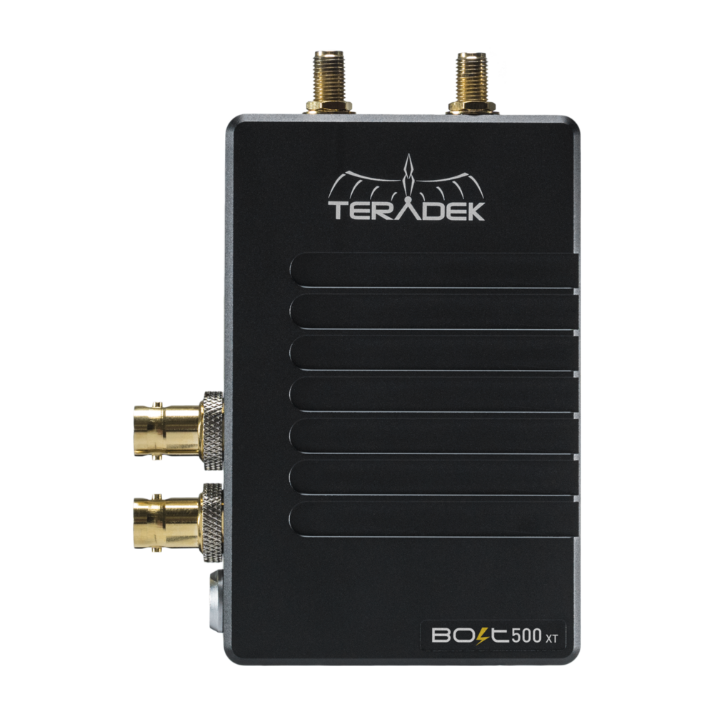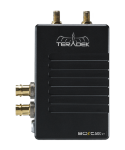 An all-new aluminum chassis further reduces the size and weight of the Bolt line, with receivers also allowing for integrated pass-through power. Available battery plate accessories include V- or Gold-mount, in addition to bi-directional Sony L-series or Canon LP-E6 plates on the Bolt 500 XT. Teradek has also replaced the internal antennas on the Bolt 500 XT transmitter with an external set to enhance wireless performance when operating in environments with large obstacles or heavy interference.