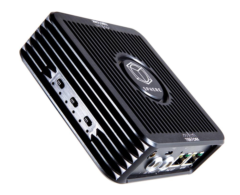 Sphere connects to wireless access points and the Internet via a 10/100 Ethernet jack. To enhance the wireless range of your Sphere stream, we recommend connecting the device to a Ubiquiti access point for a robust WiFi signal up to several thousand feet.